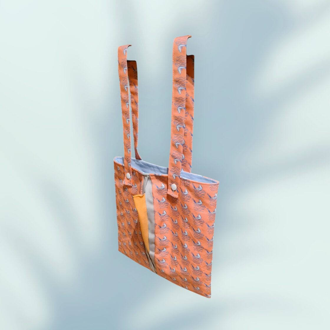 Ce distributeur contient 2 compartiments: un sur le devant pour les essuie-tout propres et l'autre en PUL imperméable pour les essuie-tout usagés en attendant leur nettoyage.