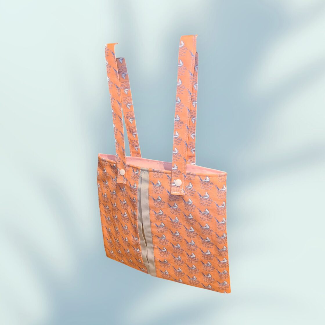 Ce distributeur contient 2 compartiments: un sur le devant pour les essuie-tout propres et l'autre en PUL imperméable pour les essuie-tout usagés en attendant le nettoyage.