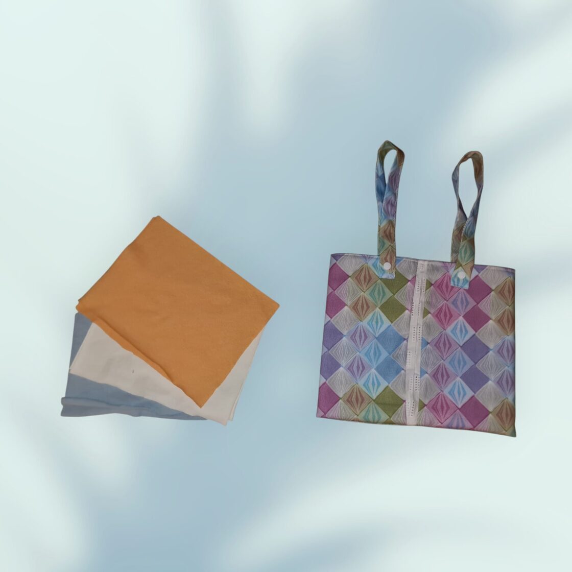 Distributeur d'essuie tout contenant 6 essuie-tout lavables.